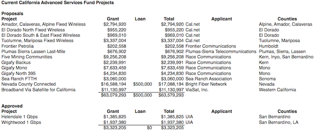 There’s still plenty of money left the California Advanced Services Fund. The year started with something like $160 million available for infrastructure construction grants. In the unlikely event that all the pending grant applications are approved, there will still be more than $90 million left for projects.