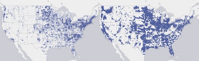 A quick comparison of technologies pinpoints the problem: wireless service providers claim to provide high rates of speed over vast distances, without regard for terrain, capacity or user’s equipment, effectively spamming the national map with availability data that is, at best, aspirational and, frequently, fictional.