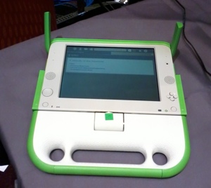 The OLPC Foundation announced the specs for the device a couple of months ago, but didn't show a working model. No one from the organization was at tonight's event, and the Marvell representatives couldn't say much about the functionality. But they could talk about the chipsets that power it.